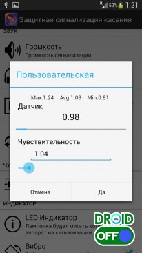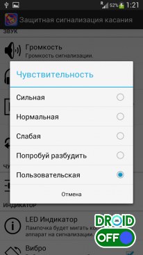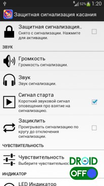 Активация сигнализации по касанию/движению устройства;