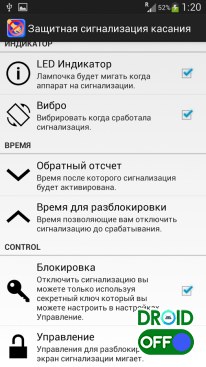 Защитная сигнализация касания – отличное приложение, направленное на защиту вашего девайса от посторонних рук. Теперь взять ваш телефон без спроса будет задачей не из легких. В случае покушения третьим лицом на вашу собственность, сработает звуковой сигнал (с записью видео злоумышленника), тем самым оповестив вас о содеянном.