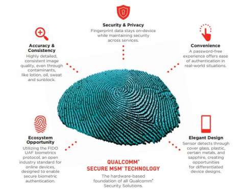 Технология Sense ID использует ультразвуковое сканирование отпечатка, что позволяет размещать контактную площадку под металлическим или стеклянным покрытием. Но что более важно, благодаря использованию ультразвука датчик способен распознавать отпечаток, даже если палец мокрый или грязный. За безопасность данных отвечает аппаратная технология Qualcomm SecureMSM. Её преимущества заключаются в использовании протокола FIDO UAF - биометрические данные пользователя хранятся в защищённой части памяти на устройстве и не передаются при онлайн-аутентификации.