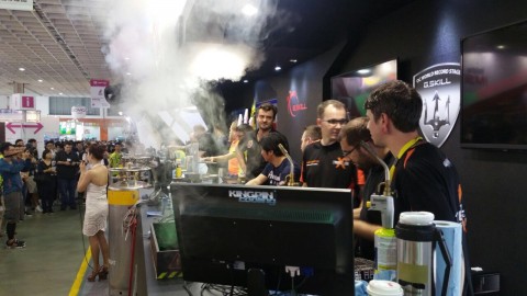 В честь завершения выставки Computex 2017 компания Gigabyte провела мероприятие X299 OC, где были собраны пять ведущих оверклокеров со всего мира. Перед ними стояла цель выжать максимум из представленного на той же выставке процессора Intel Core i7-7740K. Для этого были использованы материнская плата Gigabyte X299-SOC Champion, 16 ГБ оперативной памяти Corsair Vengeance LPX и блок питания Corsair AX 1500i.