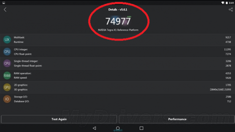 И вот теперь неизвестное устройство на Tegra X1 установило рекорд в AnTuTu, показав результат в 74 977 баллов. В 3D-графике процессор набрал чуть больше 21 000 баллов, увеличив в два раза результаты 64-битной версии чипсета Tegra K1 и его 32-битной разновидности, которые в прошлом году показали 10 994 и 10 339 соответственно.