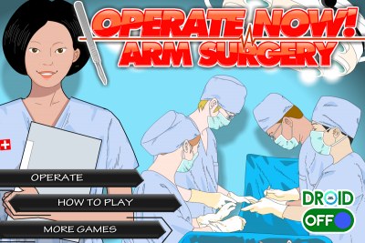 Operate Now: Arm Surgery - у пациентки тяжелая травма руки, она теряет много крови и нужна срочная операция. Сделайте рентген, чтобы видеть место травмы, произведите наркоз и приступайте к операции. Выбирая инструменты правильно, вы заработаете очки.