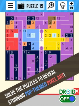 • Захватывающие пазлы с досками масштабом от 7x7 до 25x25;