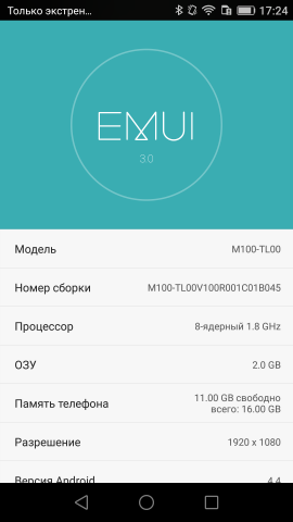- ОС: Android 5.0 с пользовательским интерфейсом EMUI 3.05.